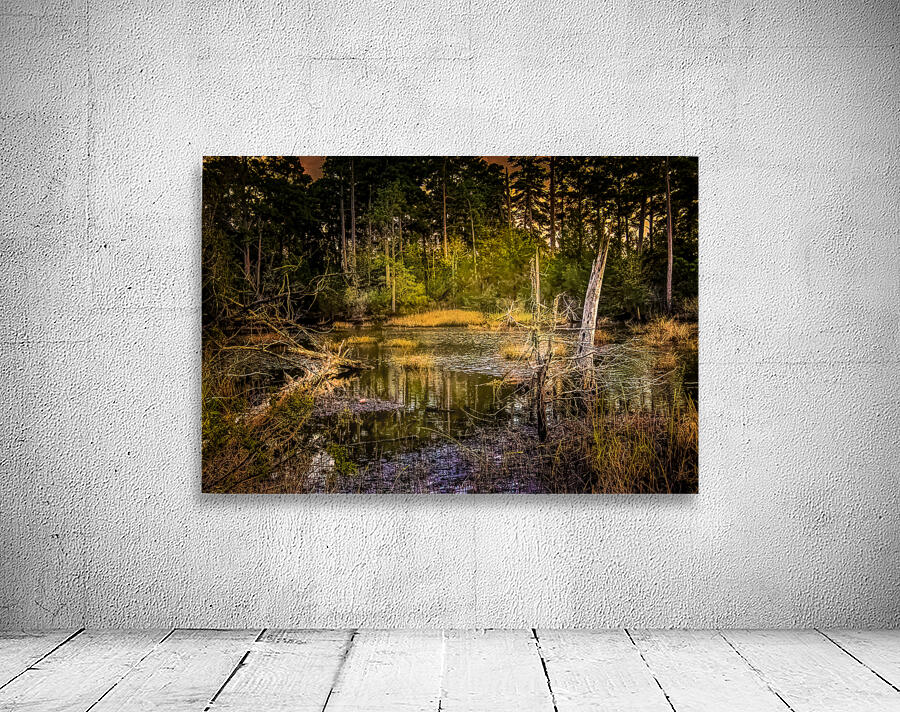 Get this artwork "Serene Virginia Forest Swamp at Dusk" in a framed print.