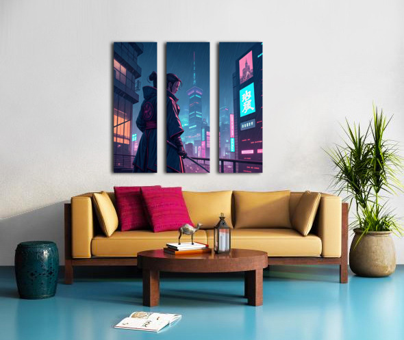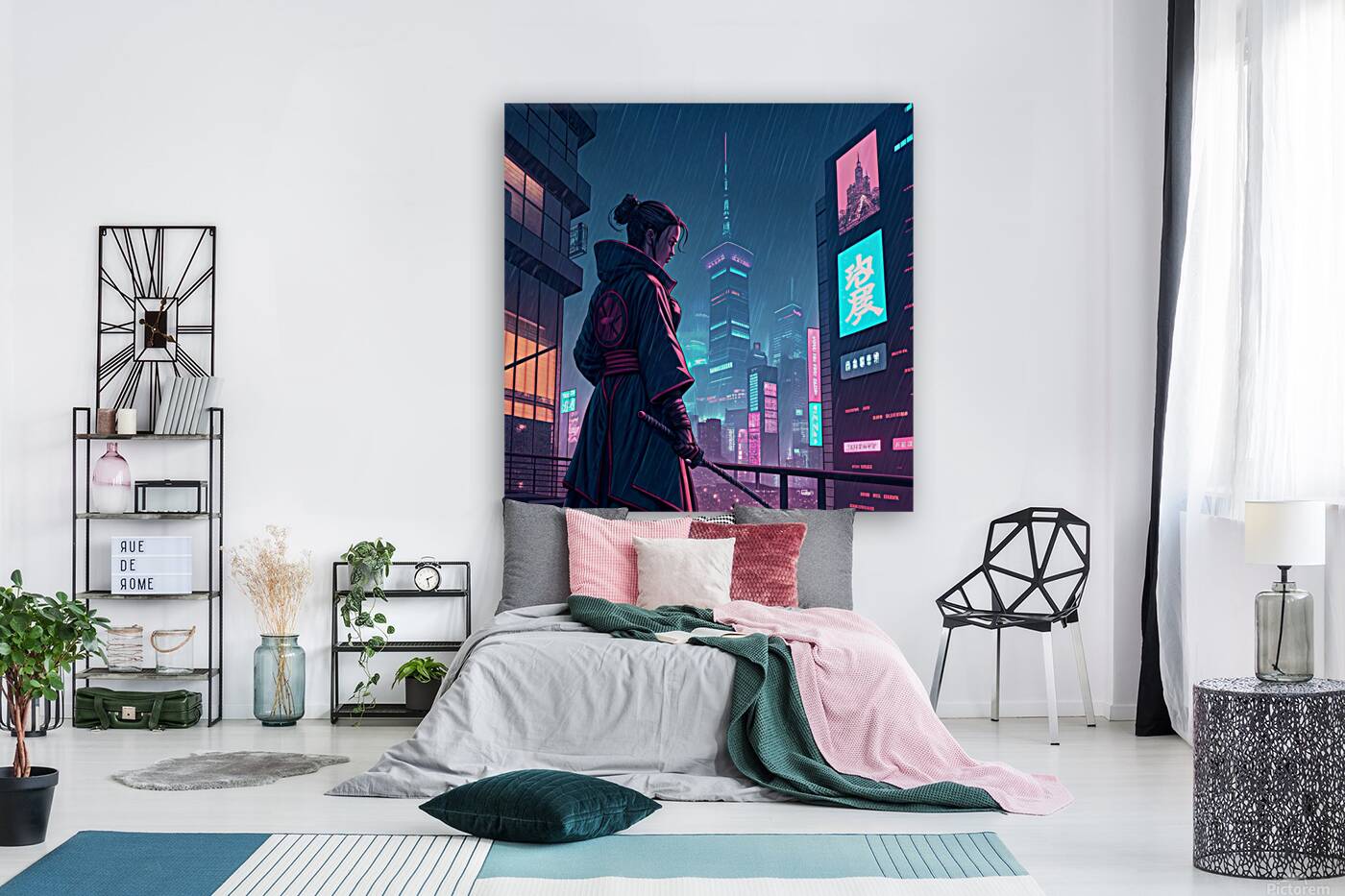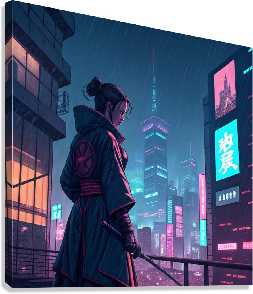NEON SAMURAI ON A RAINY TOKYO ROOFTOP ARTBEYOND  Canvas Print