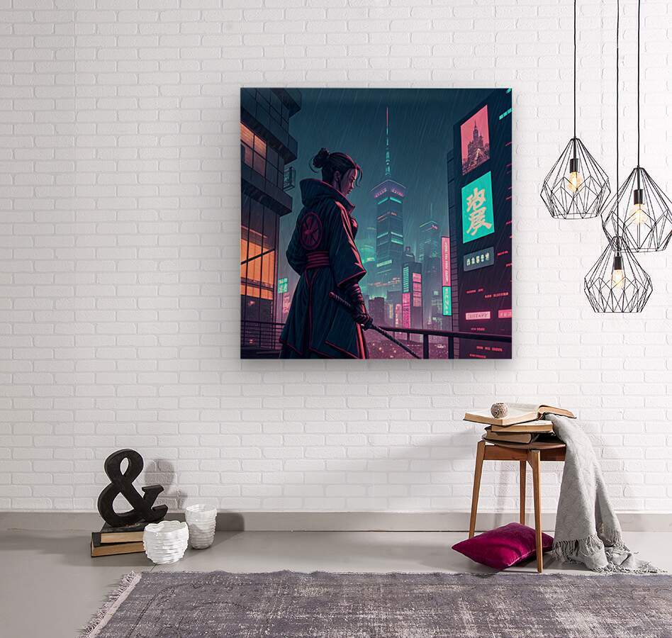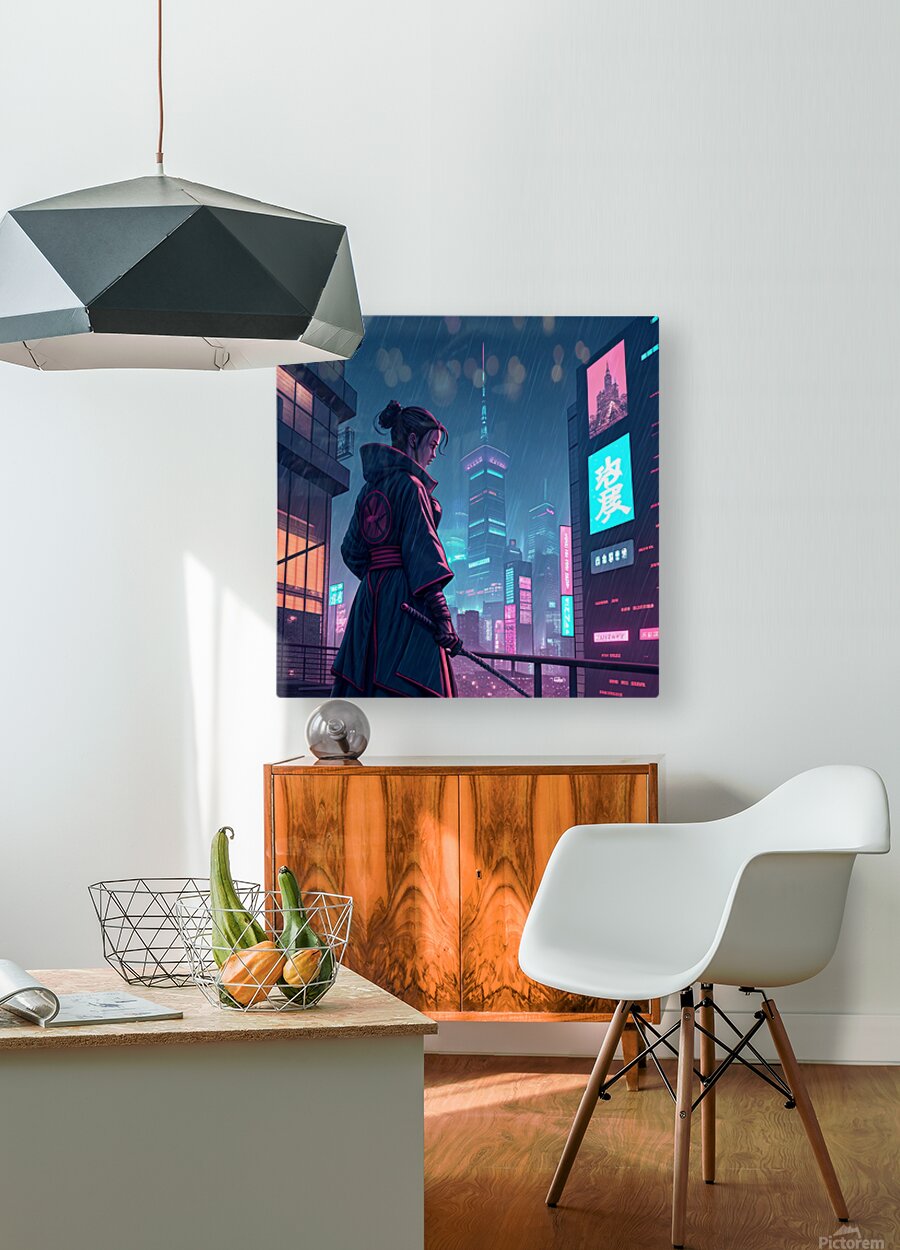 Neon Samurai on a Rainy Tokyo Rooftop HD Sublimation Metal print