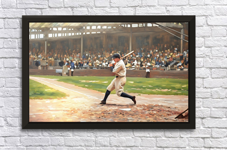Babe Ruth at Bat Mixed Media Painting Picture Frame Printing