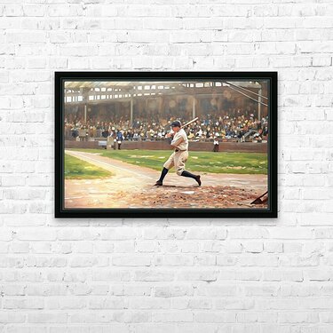 Babe Ruth at Bat Mixed Media Painting Wall Decor Frame