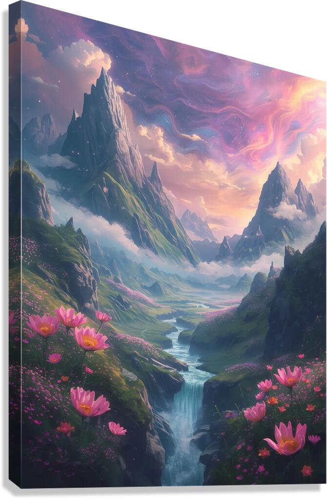 DREAM VALLEY – SURREAL MOUNTAIN LANDSCAPE UNDER A MAGICAL SKY INSPIRE ART  Canvas Print