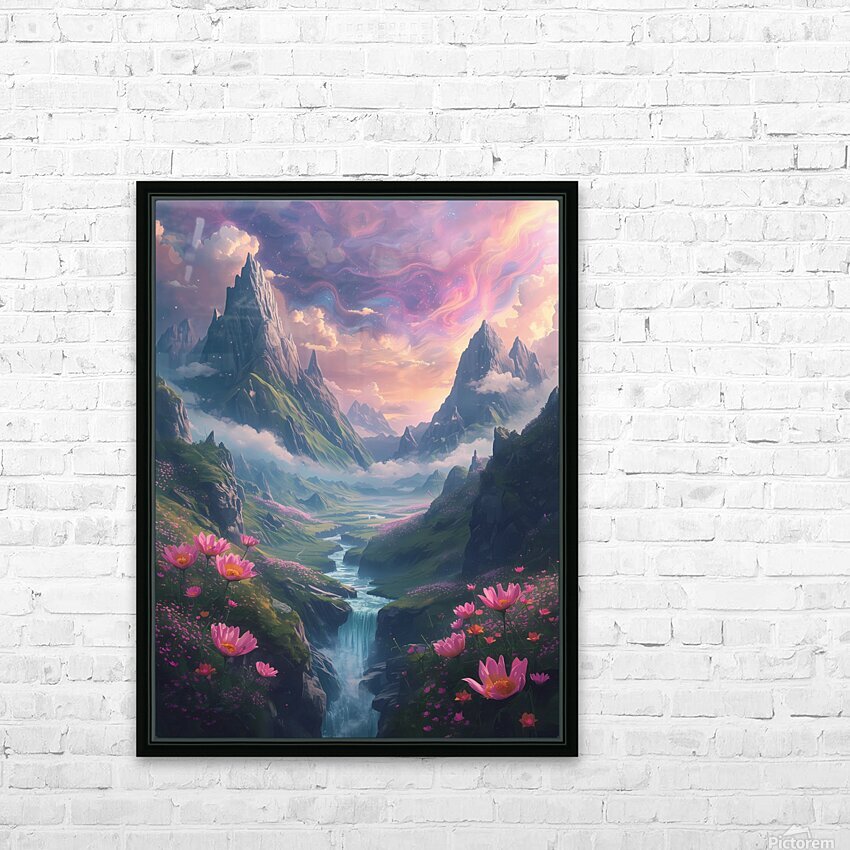 Get this artwork "Dream Valley – Surreal Mountain Landscape Under a Magical Sky" in a framed print.