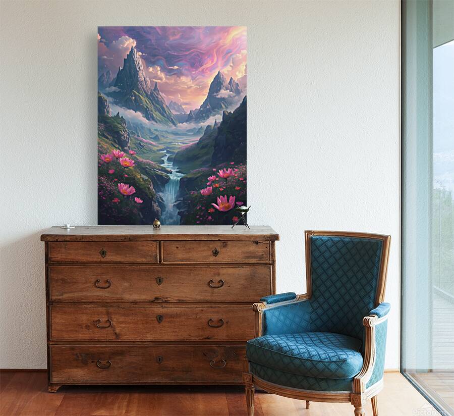 Dream Valley – Surreal Mountain Landscape Under a Magical Sky Canvas print