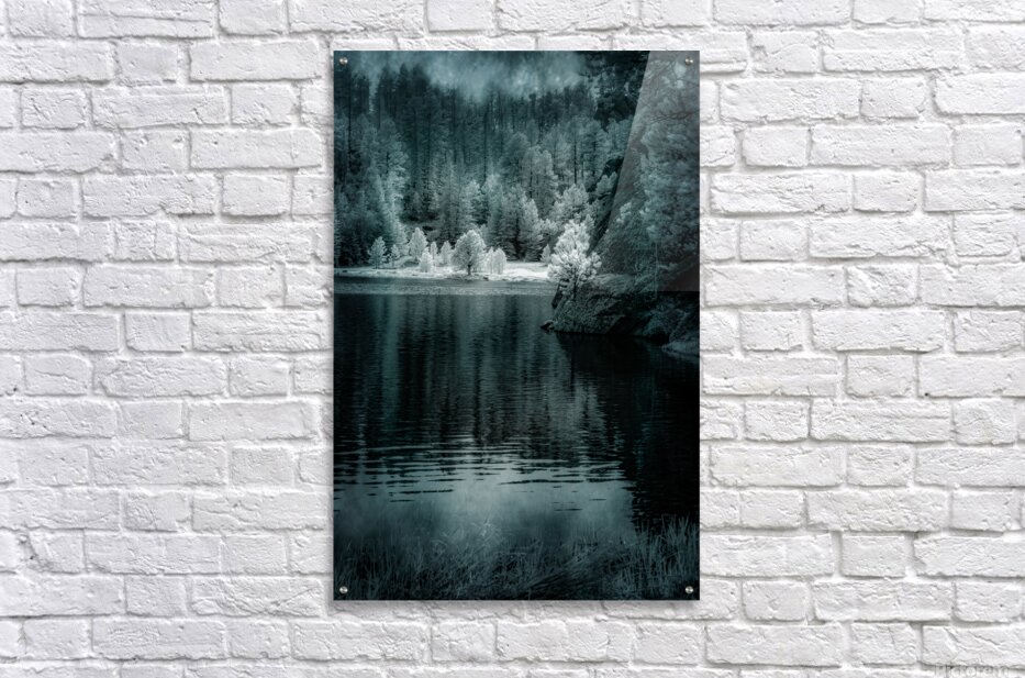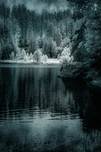 ABOUT THIS ARTWORK: ENCHANTING HAZE: SYLVAN LAKES SMOKY PINE GLOW IN INFRARED