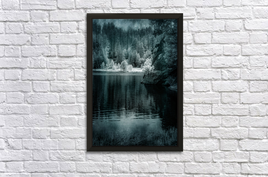 Enchanting Haze: Sylvan Lakes Smoky Pine Glow in Infrared Picture Frame Printing