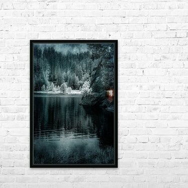 Enchanting Haze: Sylvan Lakes Smoky Pine Glow in Infrared Wall Decor Frame