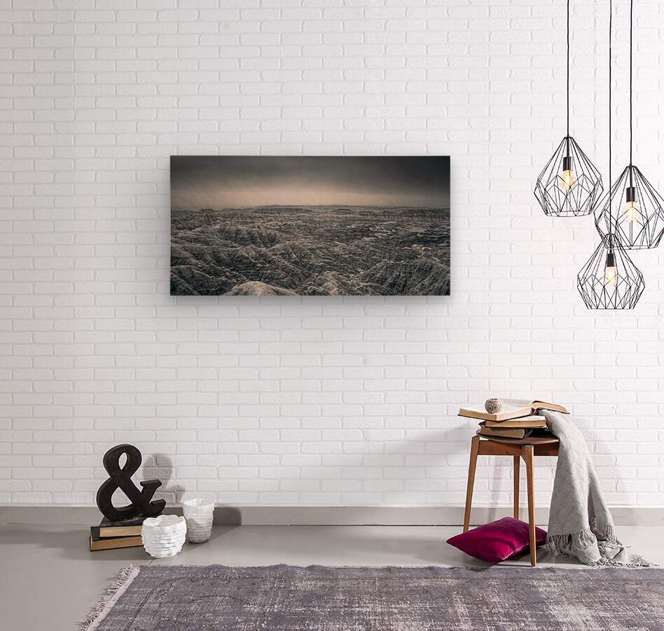 Shadows of the Earth: Ghostly Vista of the Badlands  Wood print