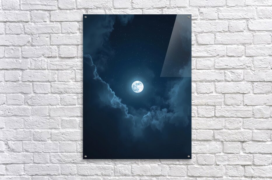 Admire the beauty of the night with this stunning scene of a glowing full moon surrounded by stars and drifting clouds. The moonlight illuminates the ...[+]