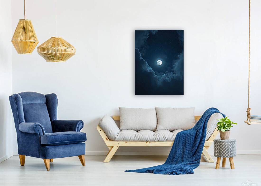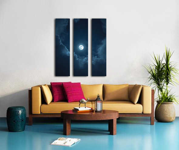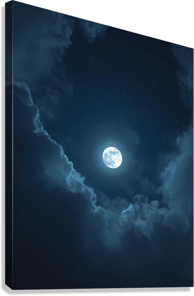 FULL MOON IN STARRY NIGHT SKY – SERENE LUNAR LANDSCAPE INSPIRE ART  Canvas Print