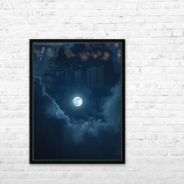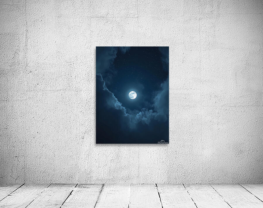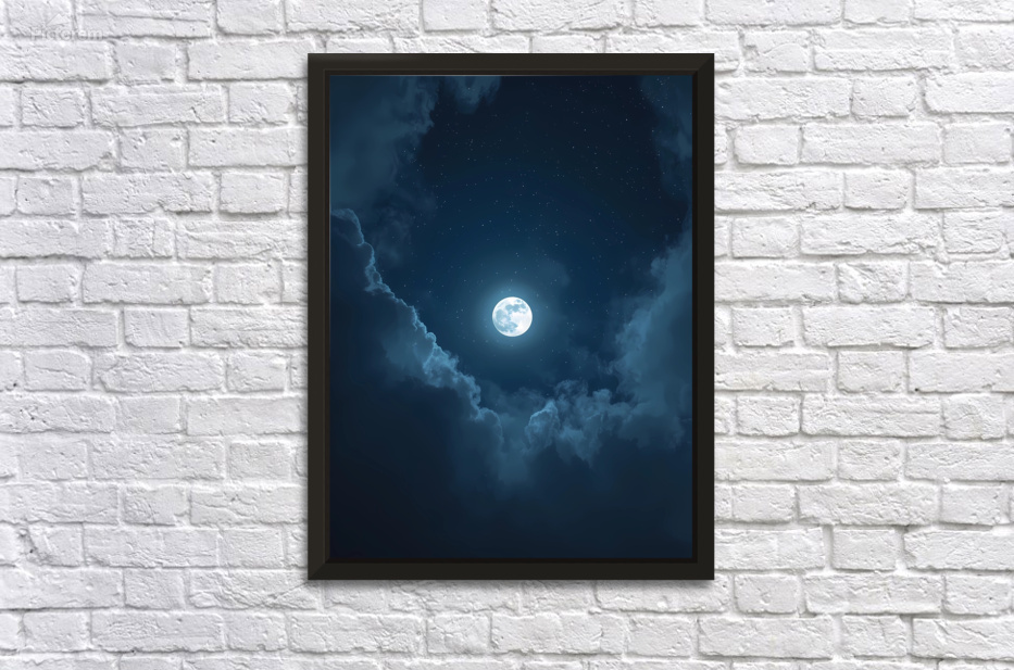 Full Moon in Starry Night Sky – Serene Lunar Landscape Picture Frame Printing