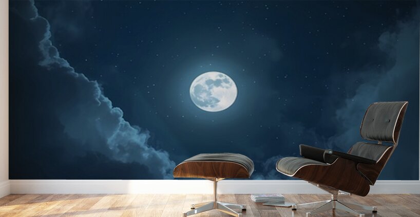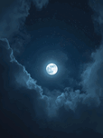 Admire the beauty of the night with this stunning scene of a glowing full moon surrounded by stars and drifting clouds. The moonlight illuminates the dark sky, creating a peaceful and enchanting atmosphere. Perfect for night sky enthusiasts, astronomy lovers, and anyone inspired by the serene glow of the moon.