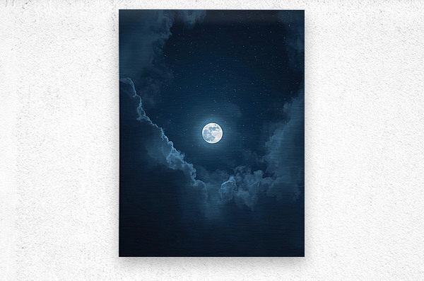 ABOUT THIS ARTWORK: FULL MOON IN STARRY NIGHT SKY – SERENE LUNAR LANDSCAPE