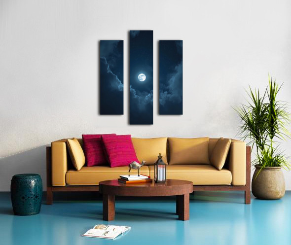 Full Moon in Starry Night Sky – Serene Lunar Landscape Canvas print
