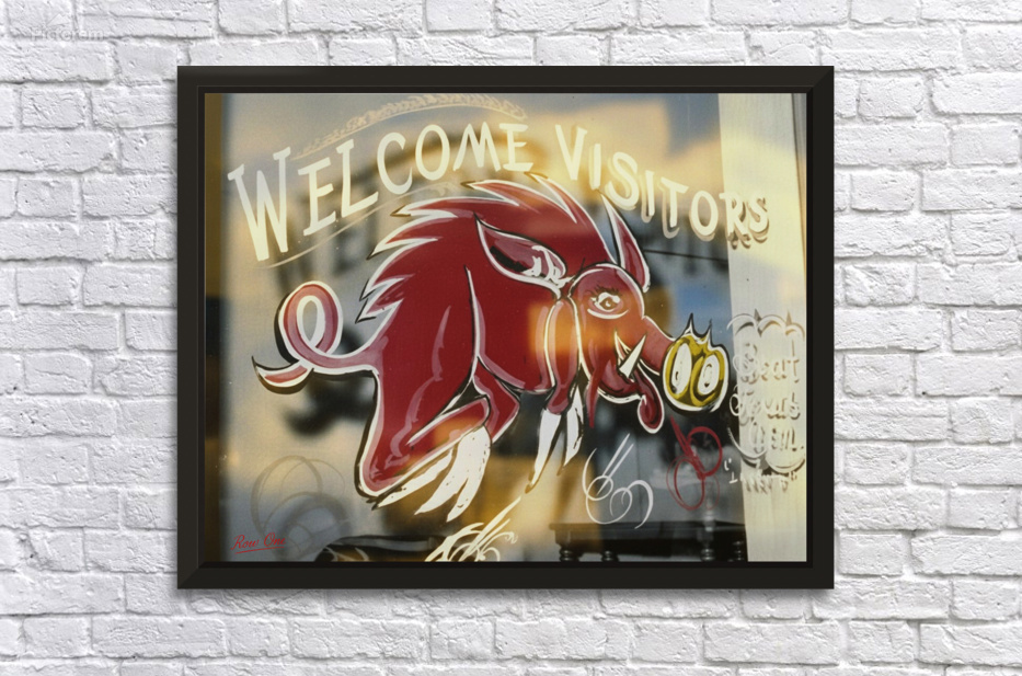 Get this artwork "1950s Arkansas Razorback Painted in Window" in a framed print.