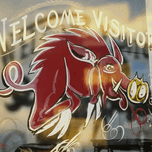 1950S ARKANSAS RAZORBACK PAINTED IN WINDOW