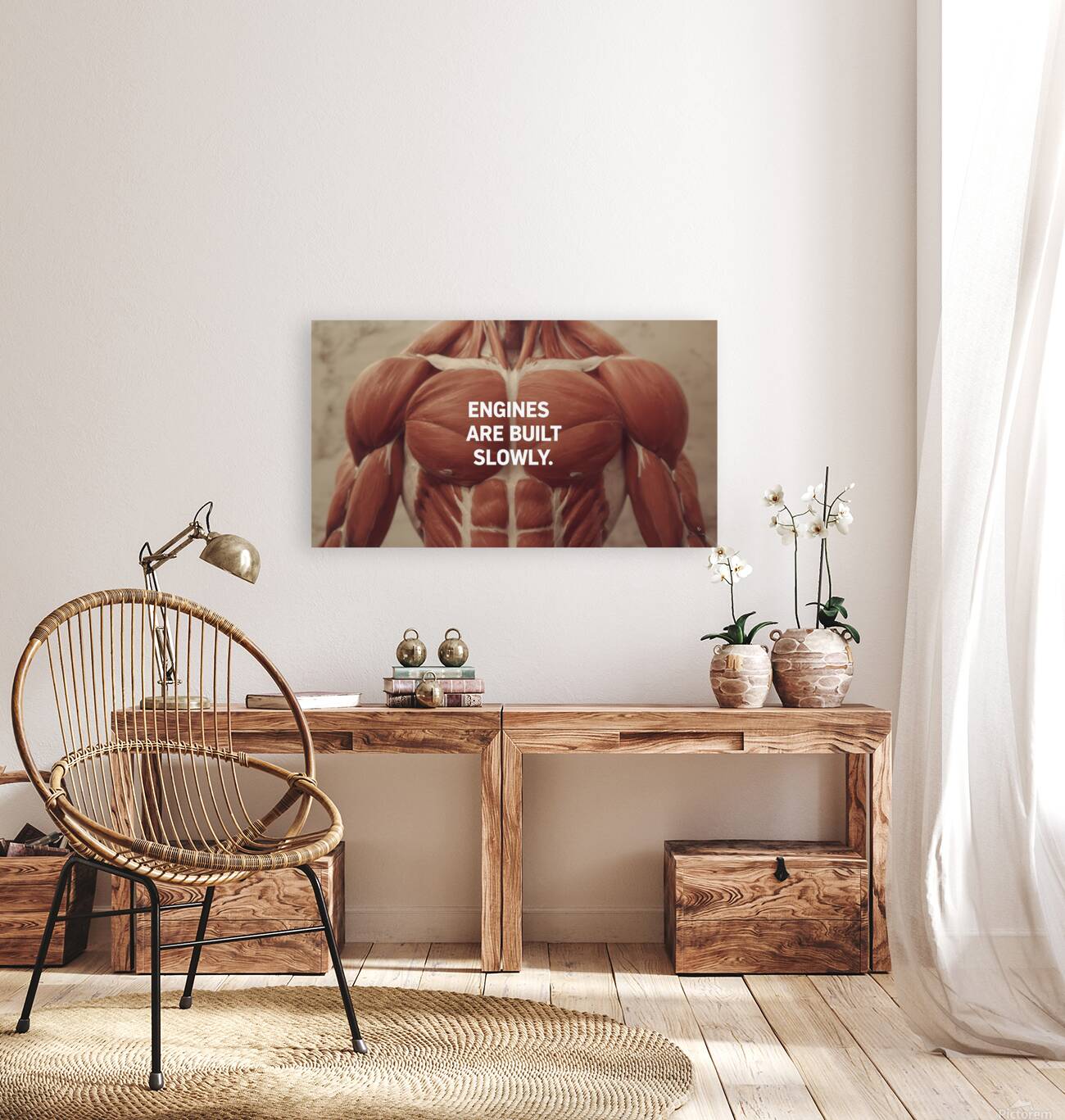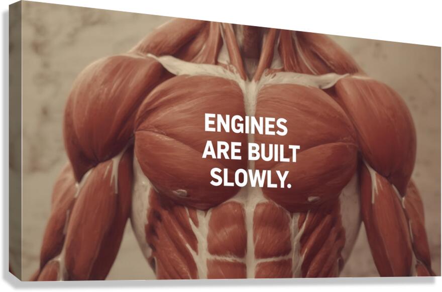 ENGINES ARE BUILT SLOWLY — MUSCULAR ANATOMY MOTIVATION POSTER MOTIVATEPRINTS  Canvas Print