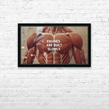 Engines Are Built Slowly — Muscular Anatomy Motivation Poster Wall Decor Frame