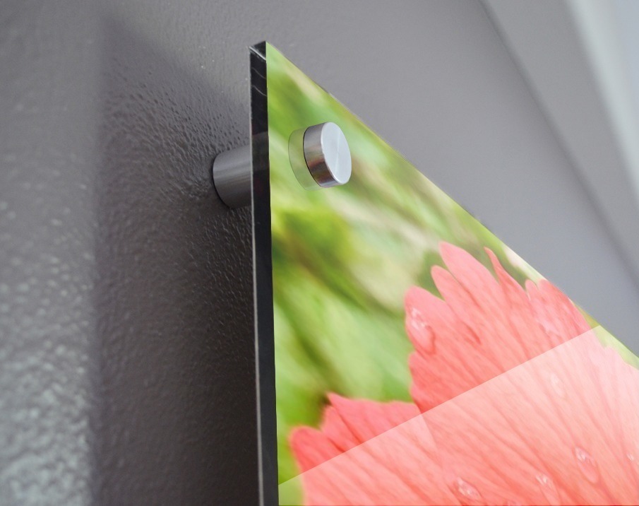 Printed to the edge - Ready to hang - provided with 4 premium polished aluminum stand off ( wall screws and mounting hardware provided )