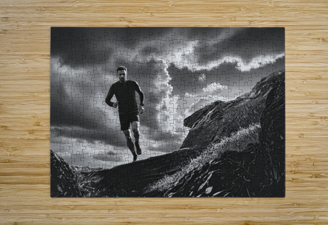 Edge of the Storm — Trail Runner on a Rocky Ridge MotivatePrints Puzzle printing