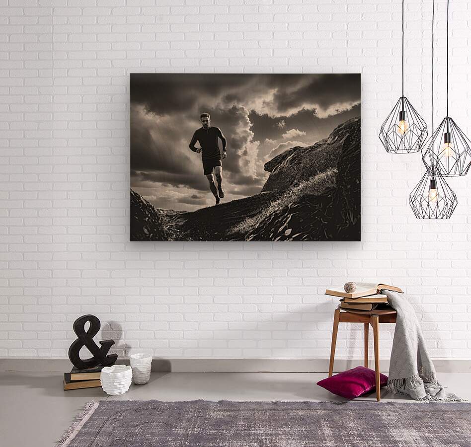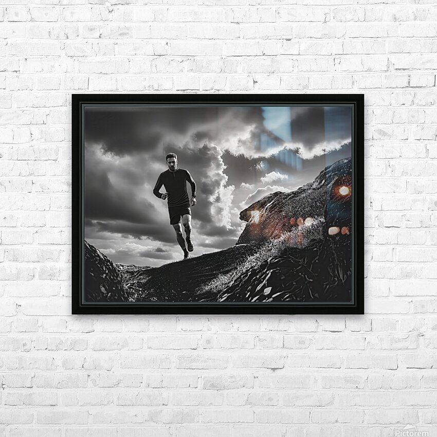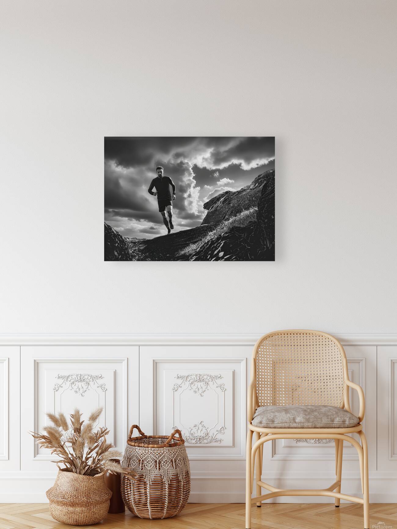 Edge of the Storm — Trail Runner on a Rocky Ridge Wall Decor Frame