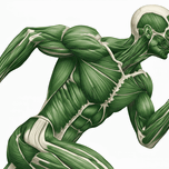 A green-toned illustration reveals the working muscular system of a runner mid-stride. Major groups in the arms, core, and legs are clearly defined to...[+]