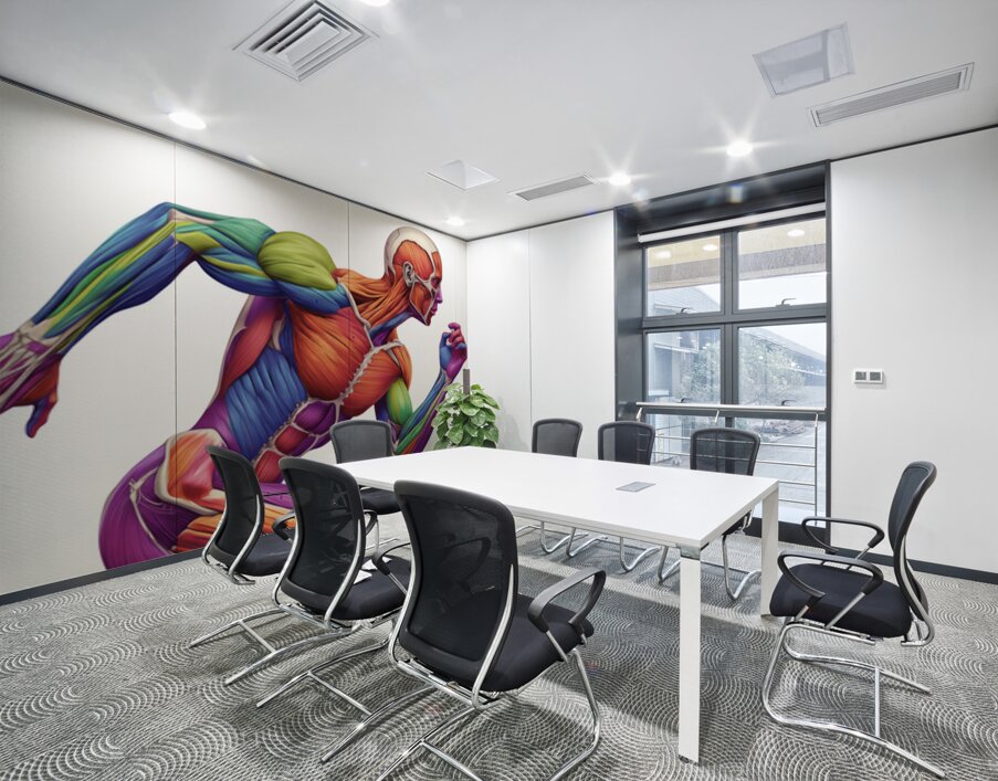 Spectrum Runner — Color-Coded Muscle Anatomy in Motion Picture Frame Printing