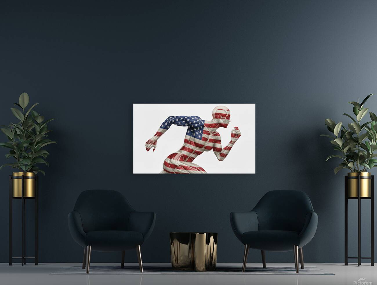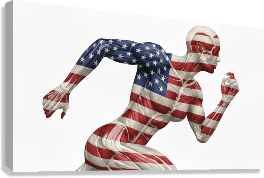 STARS AND STRIPES IN MOTION – FEMALE U.S. FLAG MUSCULAR ANATOMY RUNNER MOTIVATEPRINTS  Canvas Print