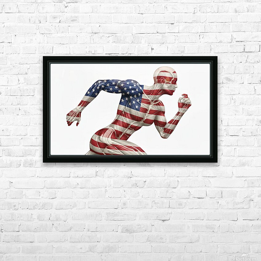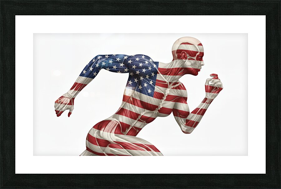 Stars and Stripes in Motion – Female U.S. Flag Muscular Anatomy Runner Picture Frame Printing