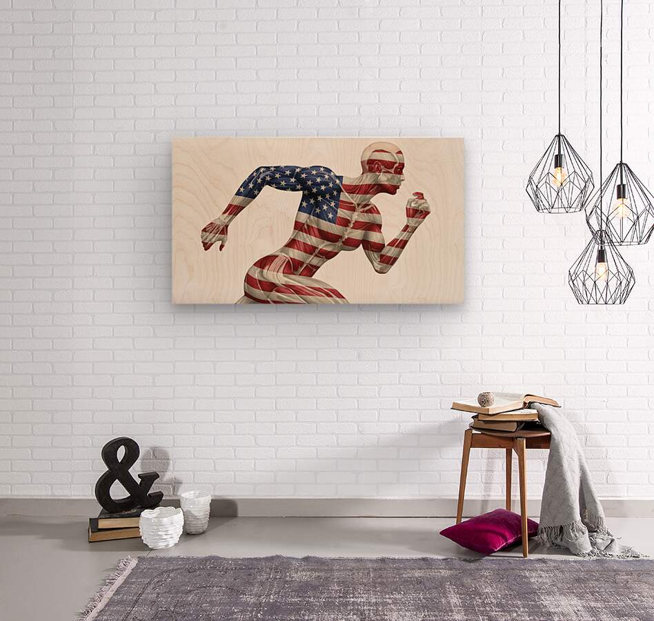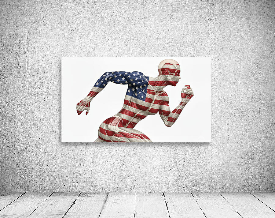Stars and Stripes in Motion – Female U.S. Flag Muscular Anatomy Runner Wall Decor Frame