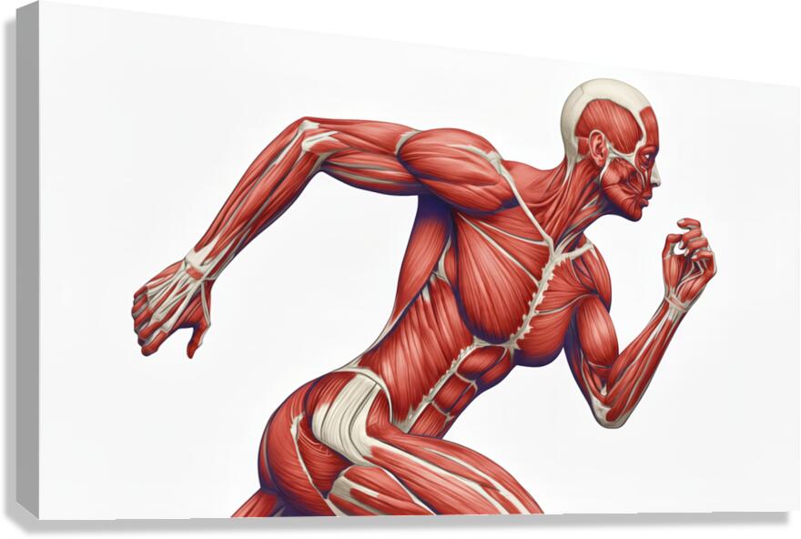 POWER IN MOTION — FEMALE RUNNER MUSCULAR ANATOMY MOTIVATEPRINTS  Canvas Print