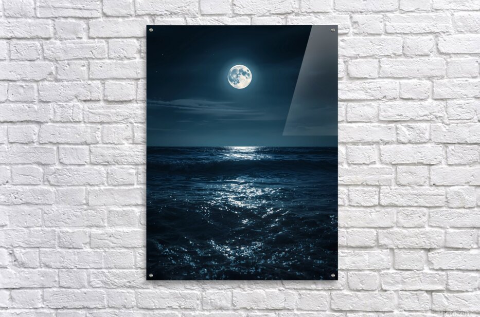 Get this artwork "Full Moon Over the Ocean – Magical Night Seascape with Moonlight Reflection" in a framed print.