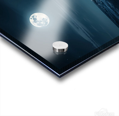 Full Moon Over the Ocean – Magical Night Seascape with Moonlight Reflection Picture Frame Printing