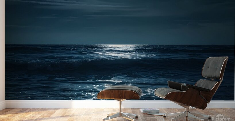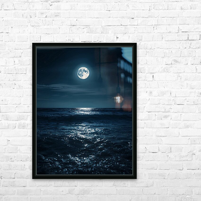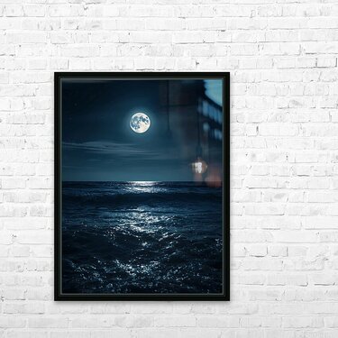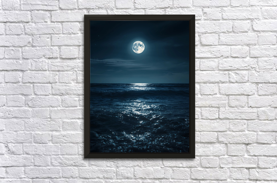 Full Moon Over the Ocean – Magical Night Seascape with Moonlight Reflection Wall Decor Frame