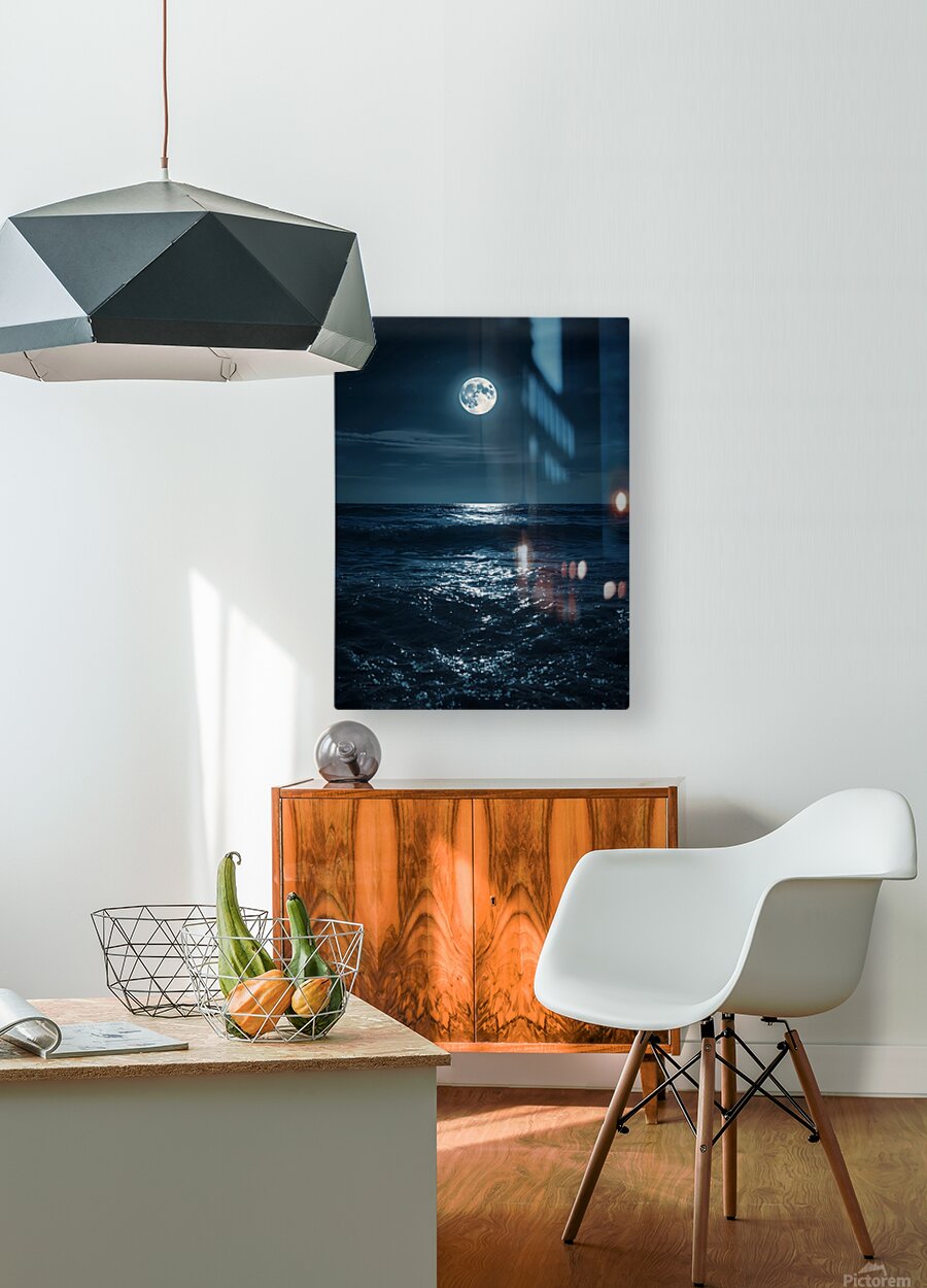 ABOUT THIS ARTWORK: FULL MOON OVER THE OCEAN – MAGICAL NIGHT SEASCAPE WITH MOONLIGHT REFLECTION