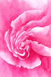 Pink Rose Close-up is a watercolor painting in portrait format painted by the artist Karen Kaspar. The painting shows the inside of a rose blossom in bright shades of pink and rose. The painting is monochrome in pink and pink shades, interrupted by the white of the paper background. The centre of the blossom is curling up like a spiral. The result is almost an abstract image of a spiral. Who can resist the beauty of a rose? The enchanting flowers inspire artists, gardeners and lovers with their bright colours and fragrant scent. Fine art prints and home decor from original artwork paintings and photography by artist Karen Kaspar. 185