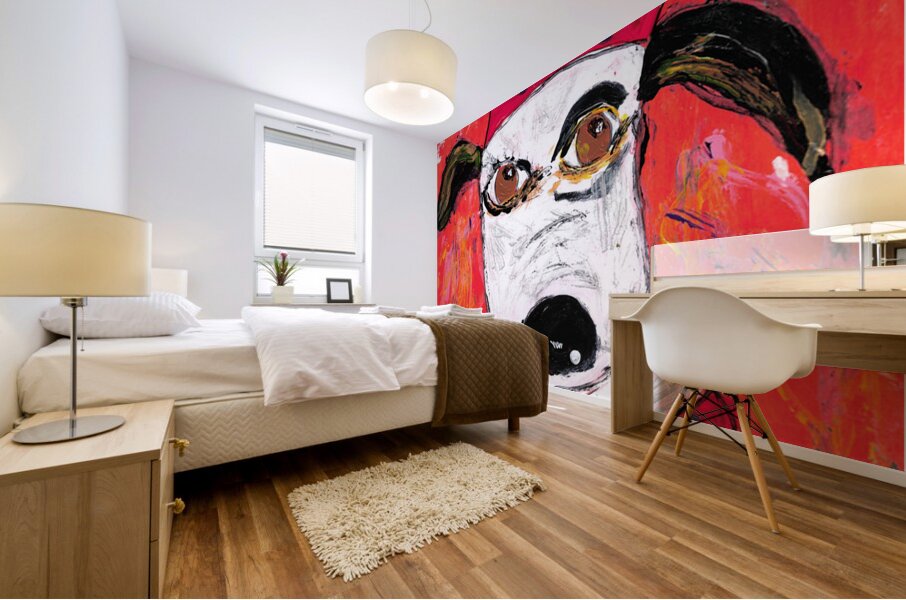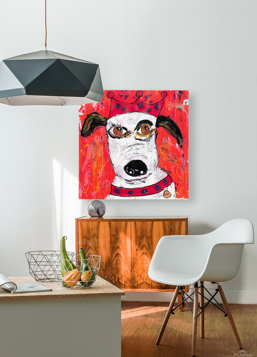 Crowned Dog is a vivid and expressive acrylic painting that blends humor, attitude, and neo-expressionist style. The portrait features a white dog named Rex wearing a bright red crown and matching collar against a fiery red background. The loose, painterly brushwork and energetic strokes give the piece a raw emotional charge, while the dog’s wide eyes and tilted expression suggest a mix of loyalty and defiance. The use of bold contrasts—white fur against red and black detailing—makes Crowned Dog a visually arresting centerpiece. This artwork celebrates individuality and charm, perfect for collectors who appreciate bold, character-driven contemporary art.