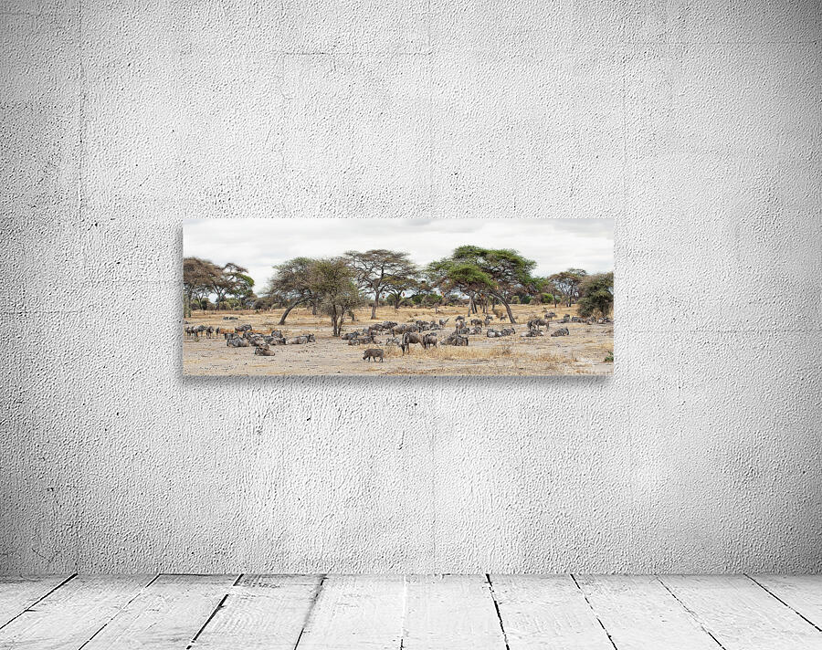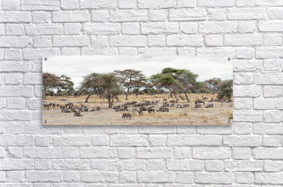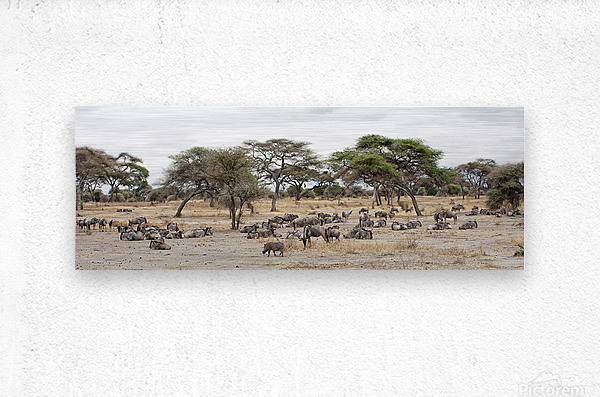Wildebeest & Warthogs   HD Metal print with Floating Frame on Back