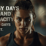 A powerful image of a focused female athlete, sweat glistening under gym lights, paired with the bold quote: “Easy days expand capacity. Hard days t...[+]