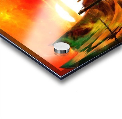 Printed to the edge - Ready to hang - provided with 4 premium polished aluminum stand off ( wall screws and mounting hardware provided )