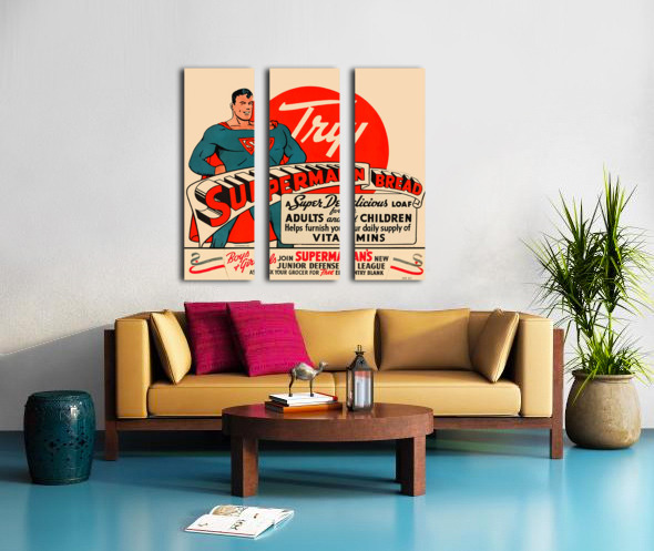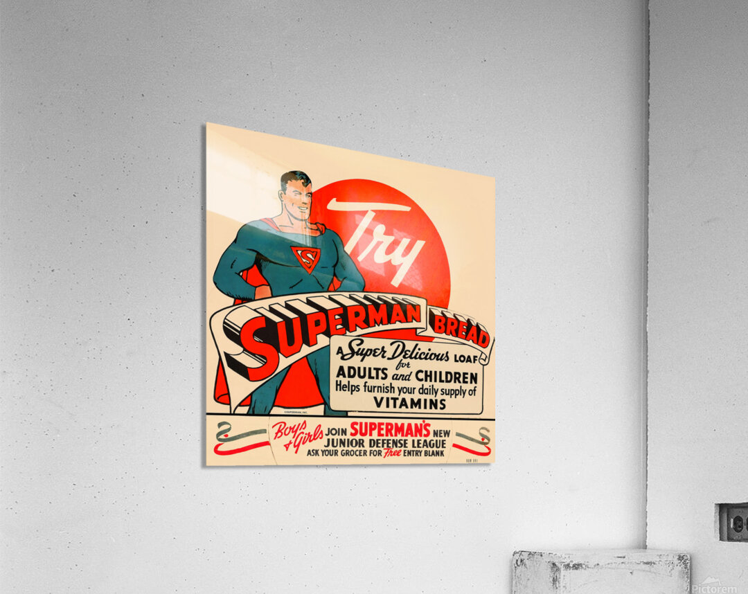 "Try Superman Bread" Vintage Ad Wall Art | Row One | Over 19,000 Historic Art Prints | This unique Superman Bread wall art This 1941 art was copyright...[+]