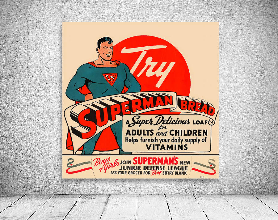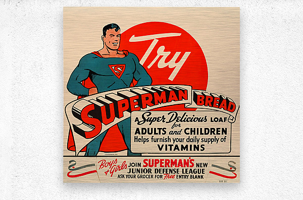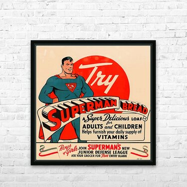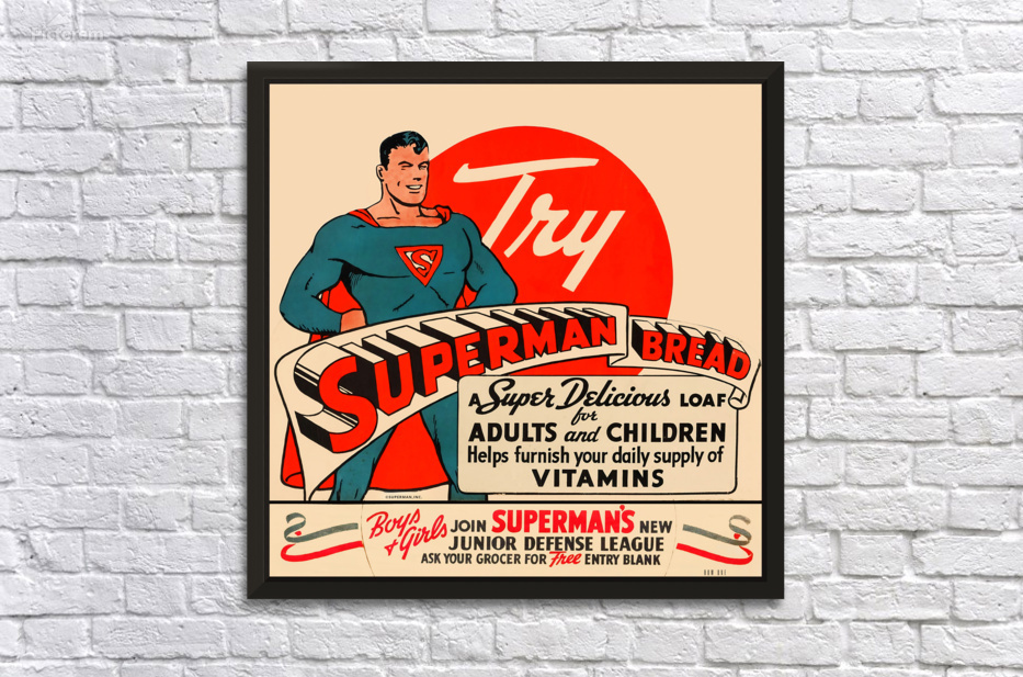 Get this artwork "1941 Superman Bread Wall Art" in a framed print.