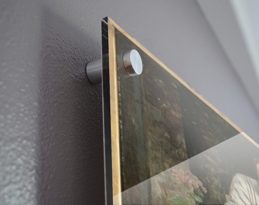 Printed to the edge - Ready to hang - provided with 4 premium polished aluminum stand off ( wall screws and mounting hardware provided )