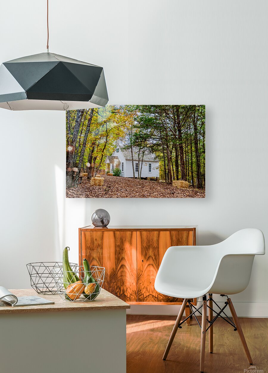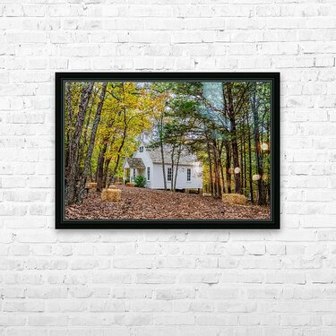 This photograph captures the historic Concord One-Room Schoolhouse during the autumn season at Kaysinger Bluff Pioneer Heritage Village in Warsaw, Missouri, USA. The cozy setting features hay bales arranged as benches, adding a rustic and welcoming touch to the scene. The school was originally built in 1858 in Quincy, Missouri, but both the original building and its first replacement were destroyed by fire during the 1897–1898 school year. The current structure faithfully preserves the legacy of the past, with the original painted chalkboards and six antique desks still on display inside. Surrounded by colorful fall foliage, this charming schoolhouse offers a glimpse into Missouri’s pioneer education history. This photo was taken by Jennifer White with Timeless Moments Photography. All images are copyrighted © Timeless Moments Photography/Jennifer White. All rights reserved. Please note the watermark does not print on ordered products.