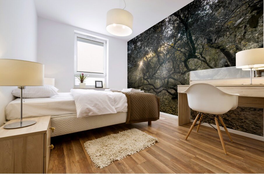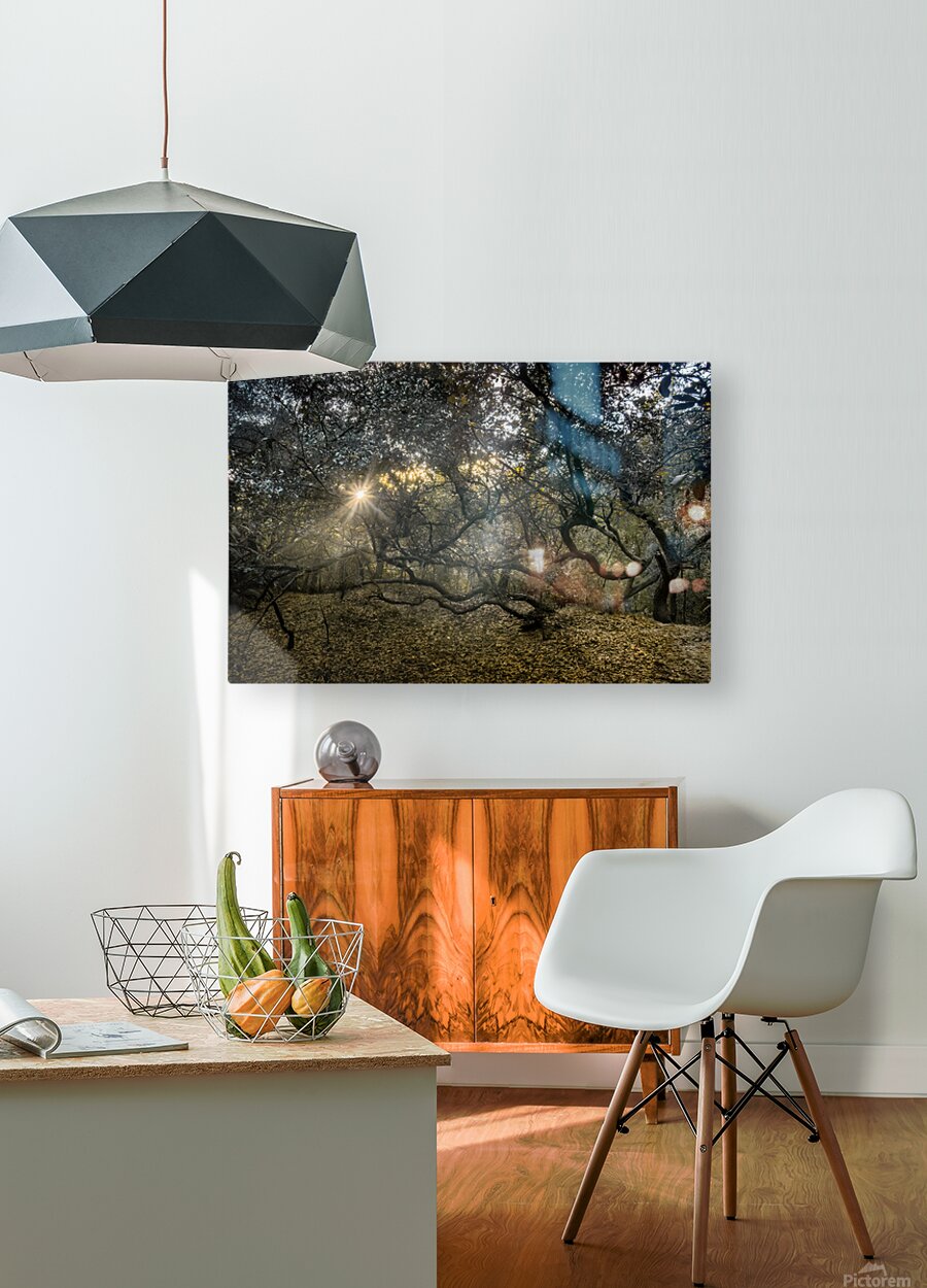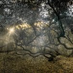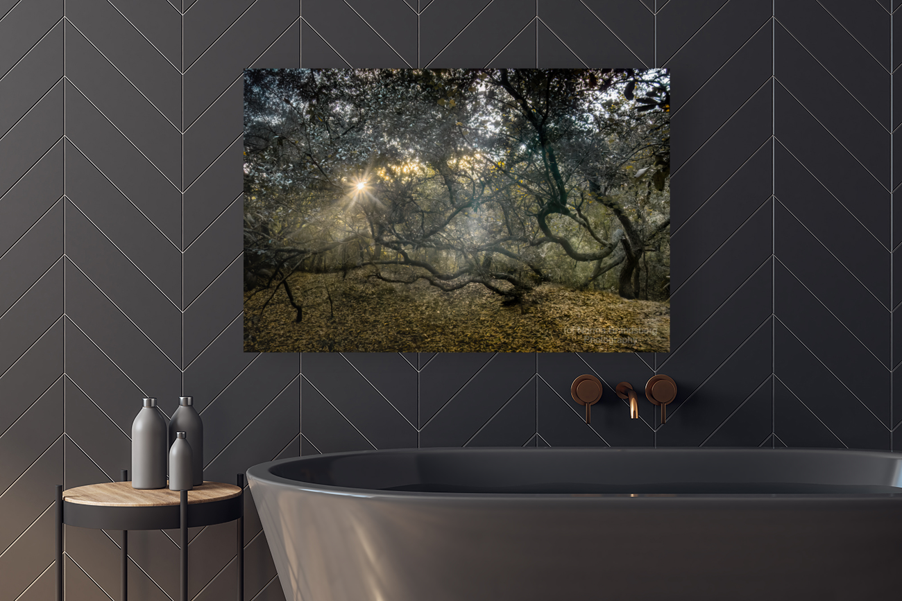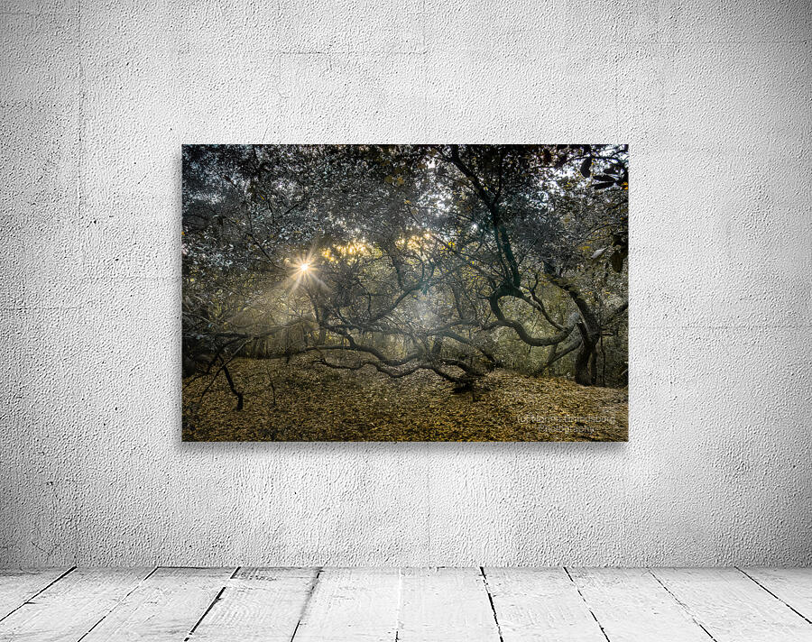 ABOUT THIS ARTWORK: TWISTED LIVE OAK TREE FOREST SUNBEAMS