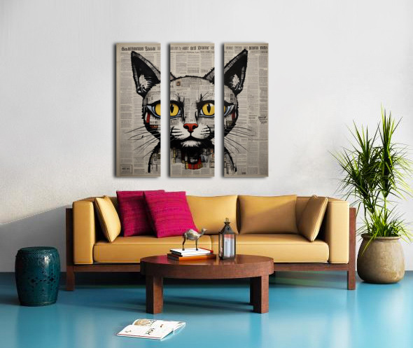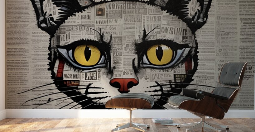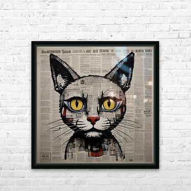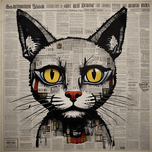 Serious cat on newspaper print style!