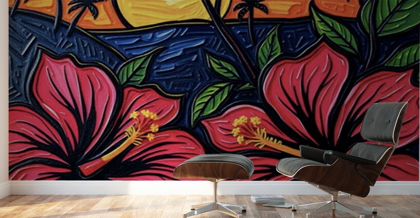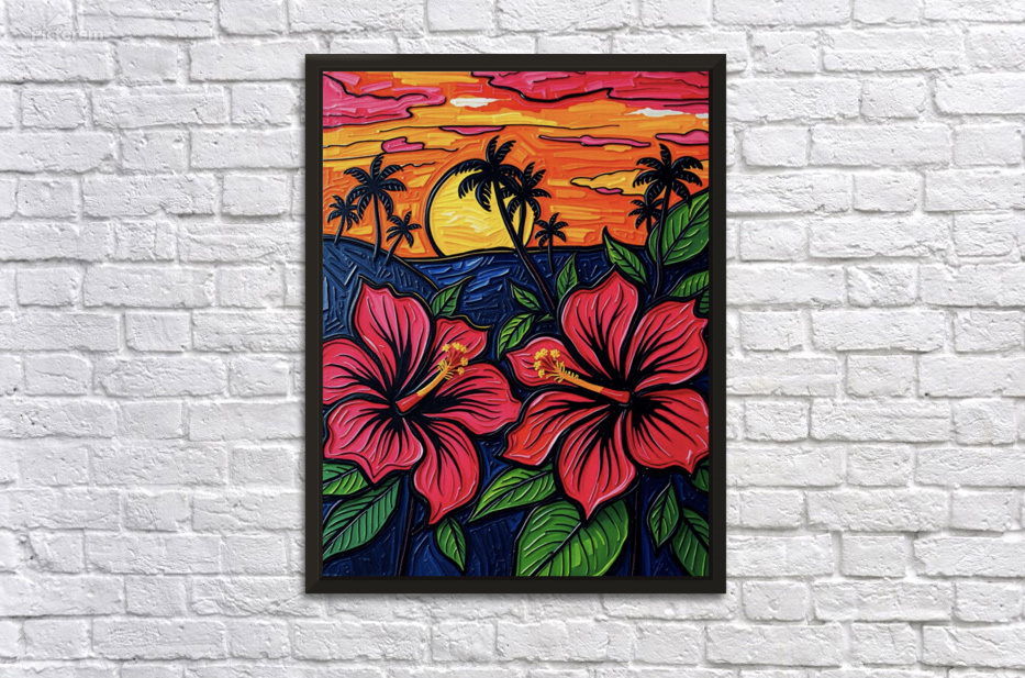 ABOUT THIS ARTWORK: HIBISCUS FLOWERS AT SUNSET