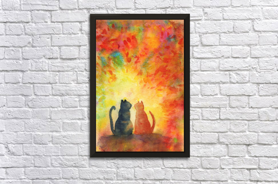 Get this artwork "Two cats under a colorful sky" in a framed print.