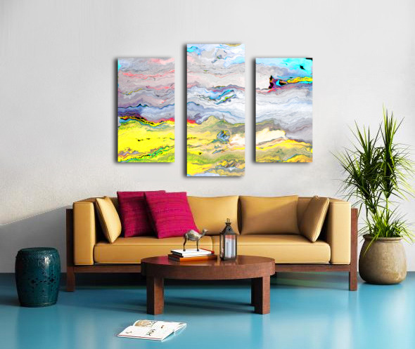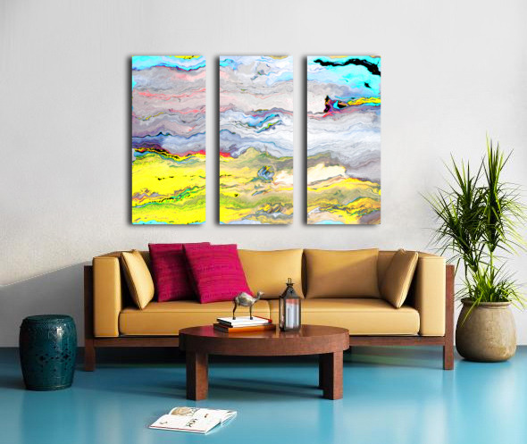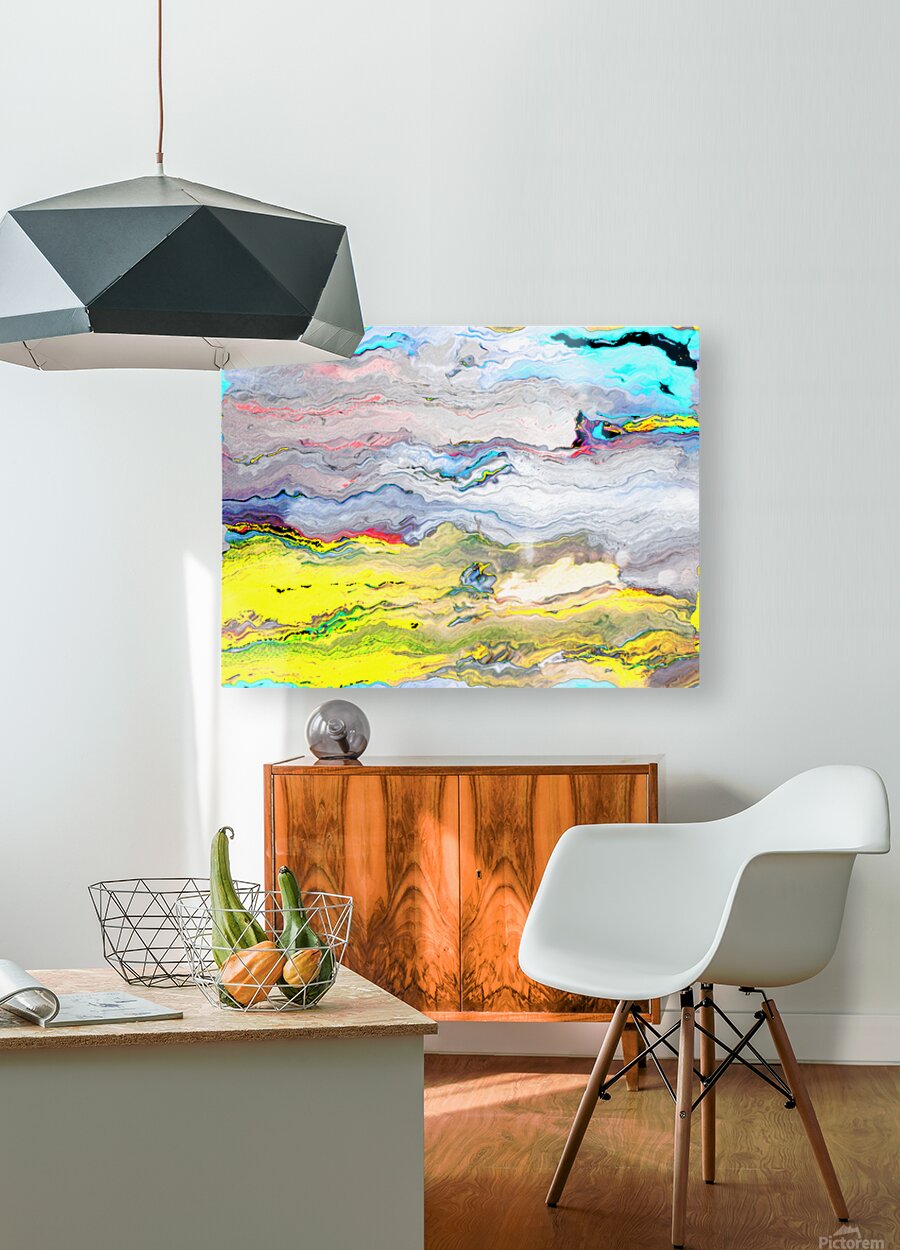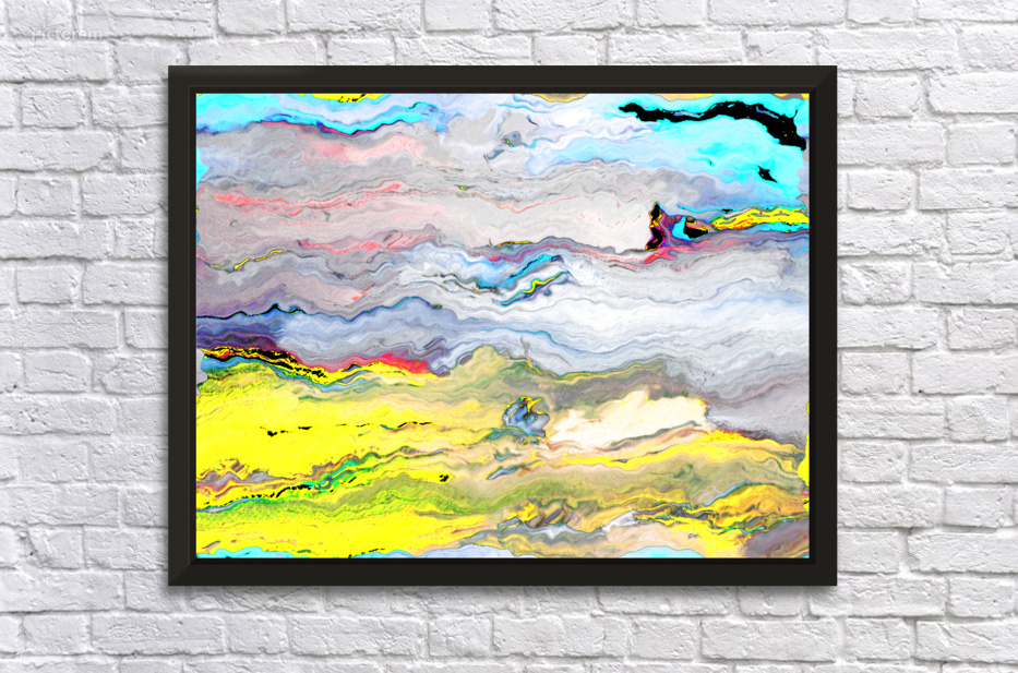 Originally a hand painted abstract acrylic laterally digitally manipulated using various means ( including creative filters within Canva.com) enabled this contemporary piece of abstract art to emerge). Features a swirling mix of vivid colors creates an abstract landscape. Bright yellows and blues dominate the scene, evoking a sense of movement