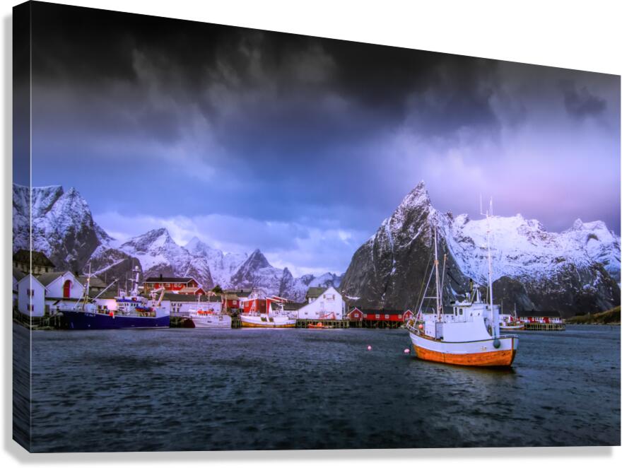 SNOWY HAMNOY NORWEGIAN FISHING VILLAGE NORMA BRANDSBERG PHOTOGRAPHY  Canvas Print